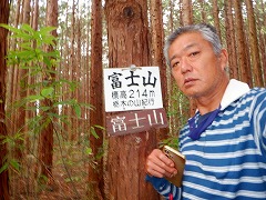 ★ご当地富士山。登山口から標高差1m、30秒で立派な山名版がある。