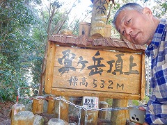 粟ヶ岳 ★山頂まで車道があるので行って見たが舗装道路だが狭い道が長くすれ違いが大変。山に「茶」と書いてある。山頂には神社、テラスがある。
