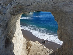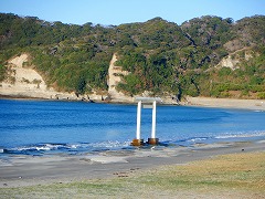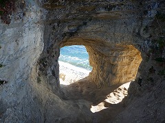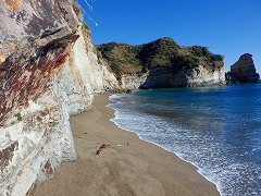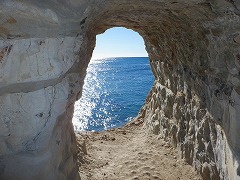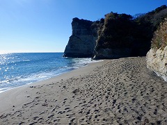 勝浦・小浦海岸 ★大波戸駐車場から歩いたが「ドン・ロドリゴ上陸地」に駐車場があった。SNSでバズったこの景色を見たかった。手掘りのトンネルを超えると藪っぽい道になる。砂浜への道がありプライベートビーチで良い。